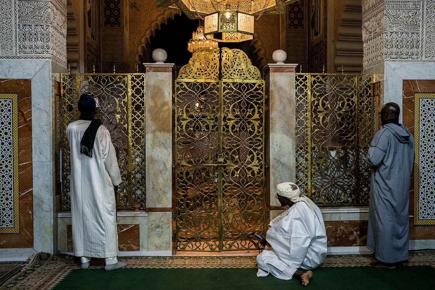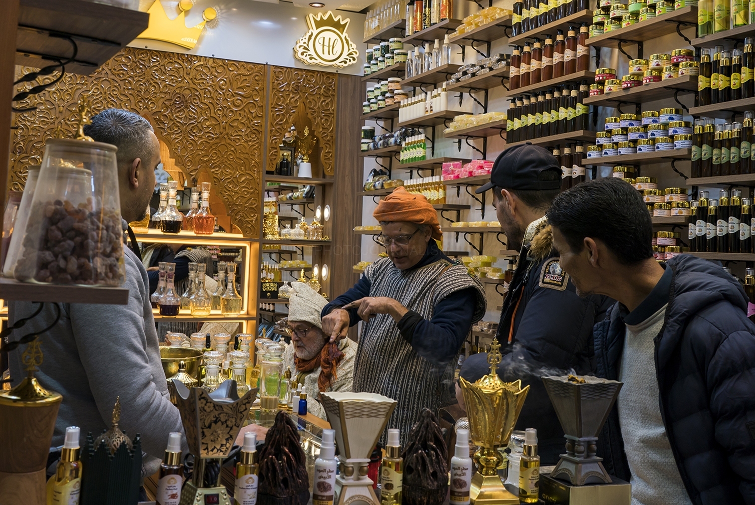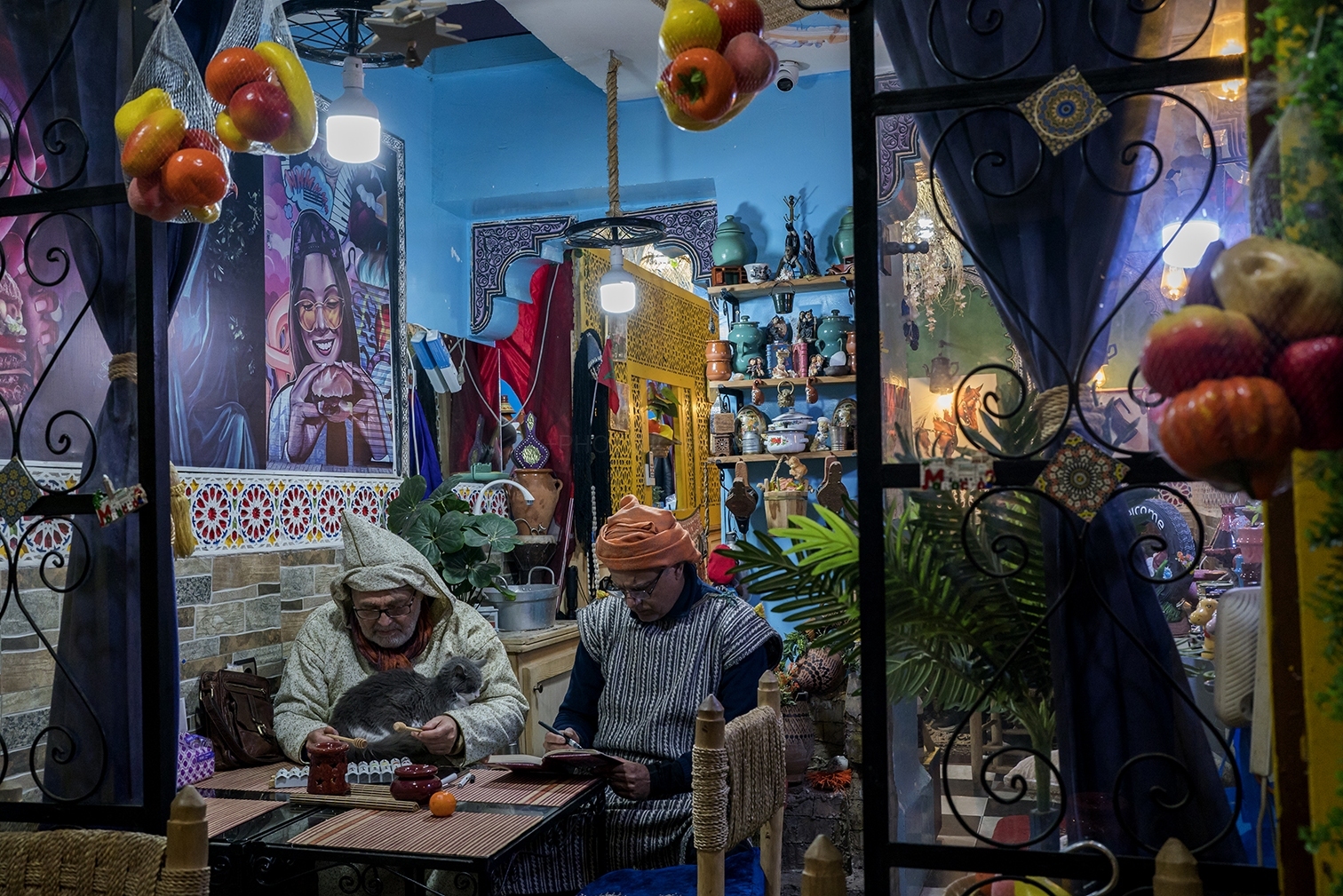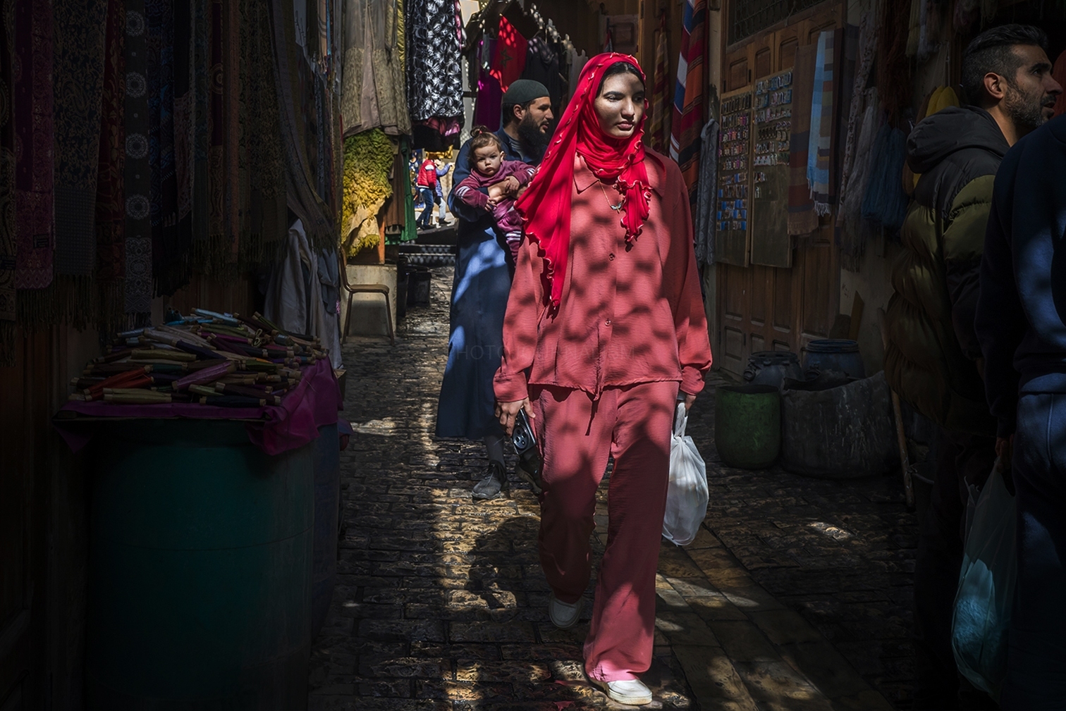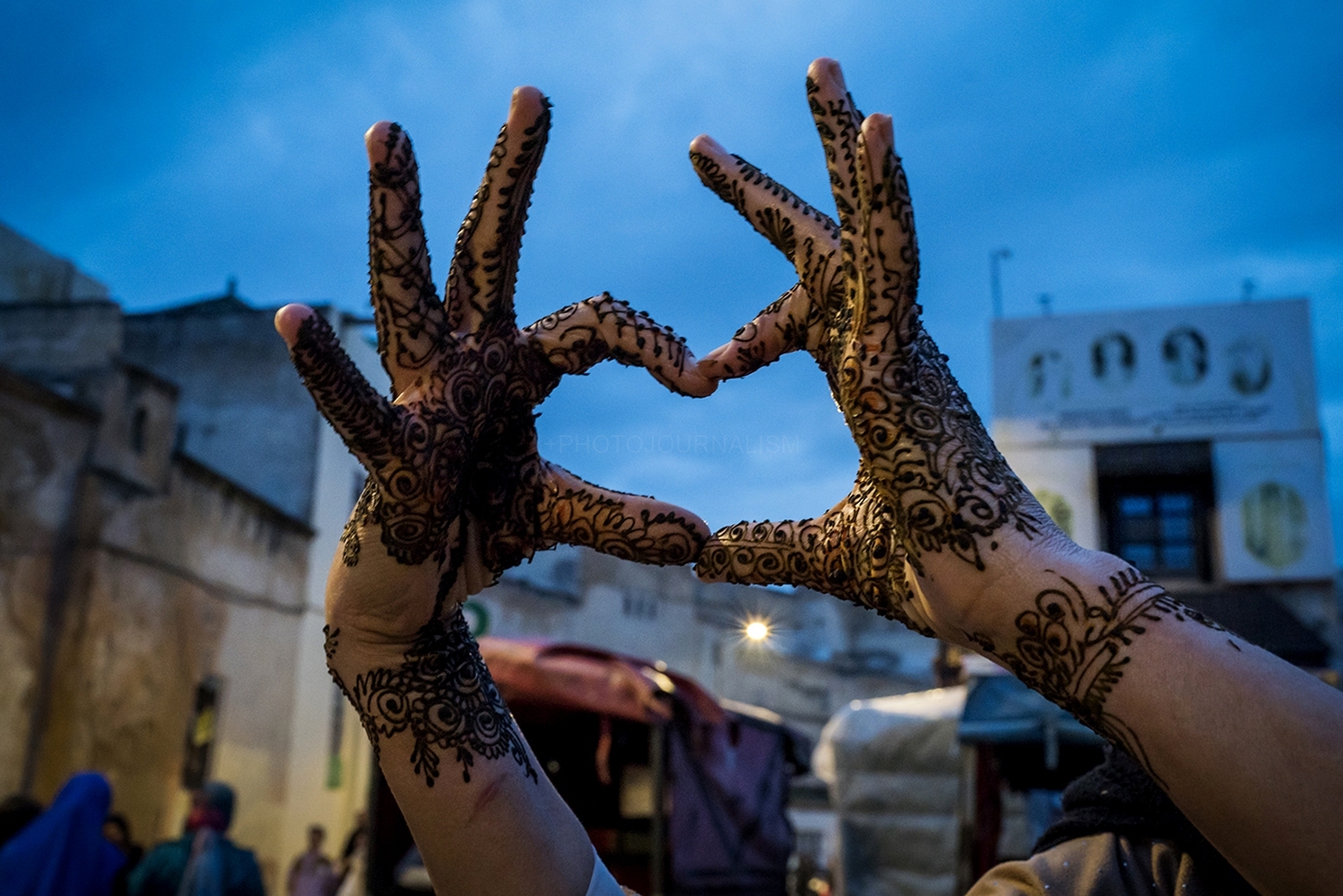 Como el zoco o las llamadas al rezo desde los minaretes, el turismo masivo forma parte tal indisoluble de la vieja Medina como el aire que se respira. En pleno Ramadán, el día transcurre con su vibrante rutina: mercados abarrotados, el incesante martilleo de los caldereros y el persistente aroma de las curtidurías. Las compactas oleadas que entran y salen de las mezquitas se entremezclan con el ir y venir de cúmulos de turismo multinacional pendientes ante todo de la banderita del guía. En medio de la soleada Plaza Safarine un nutrido grupo de aspecto centroeuropeo se detiene en torno a un calderero que templa una pieza descomunal sobre un hornillo. El guía, un joven marroquí en flamante chilaba color añil, da indicaciones en alemán: «son ustedes libres de fotografiar a su antojo». Ni el enjambre de cámaras que le encuadran saca al artesano de su labor. Ni una mirada, ni un triste «salam aleikun» que indique contacto. Pero el término ‘decorado viviente’ que sugiere la escena y que hace a Fez tan atractiva para la industria turística podría aplicarse también a la manera en que los residentes perciben esta incesante avalancha: una masiva fuente de ingresos, controlada para que moleste lo justo. De hecho, fuera de las horas laborables de los guías, y especial tras la puesta de sol, la Medina recupera su genuina atmósfera musulmana. Con la inmensa mayoría de los extranjeros refugiados en alguno de los miles de airb’nb y similares que minan de arriba abajo la ciudadela, el colorido ambiente callejero vibra a la luz rojiza de las farolas, aparentemente ajeno a signo alguno de gentrificación.